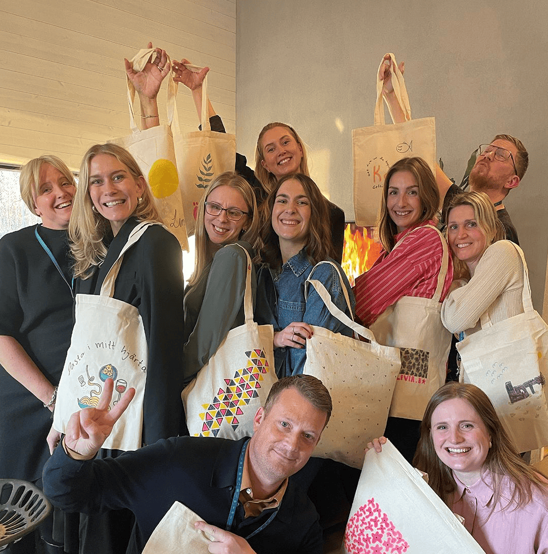 What happens when a team that works with branded products gets creative after hours? A relaxed after work, a bunch of blank tote bags, and a lot of laughter.